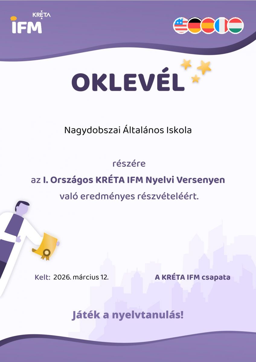 A KRÉTA IFM Országos Nyelvi Versenyen iskolánk a 27. helyen végzett.