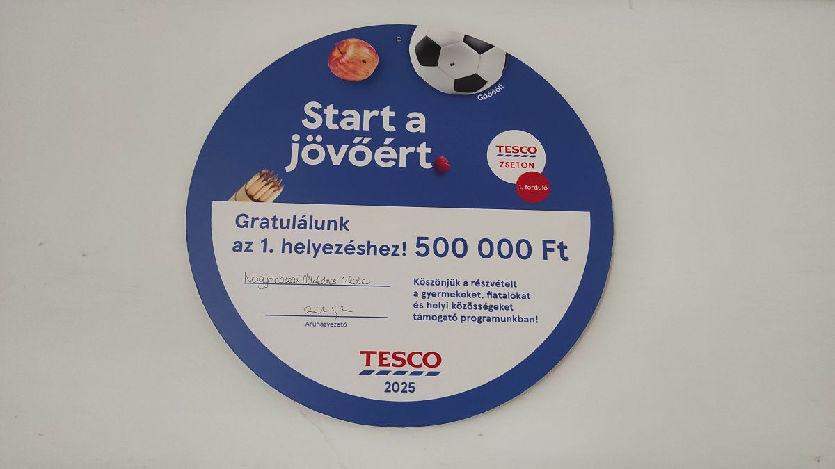 Tesco „Start a jövőért!” elnevezésű pályázati programban intézményünk az első helyen végzett, mellyel elnyerte az 500.000 forintos támogatási összeget. A Tesco által nyújtott támogatást az iskolai környezet megújítására fordítottuk. A program során felújítottuk a játszóteret, a kiülőket, virágládákat helyeztünk ki, fákat ültettünk, valamint új kiülőket vásároltunk. Köszönjük a szülők, a résztvevők és a Tesco támogatását.